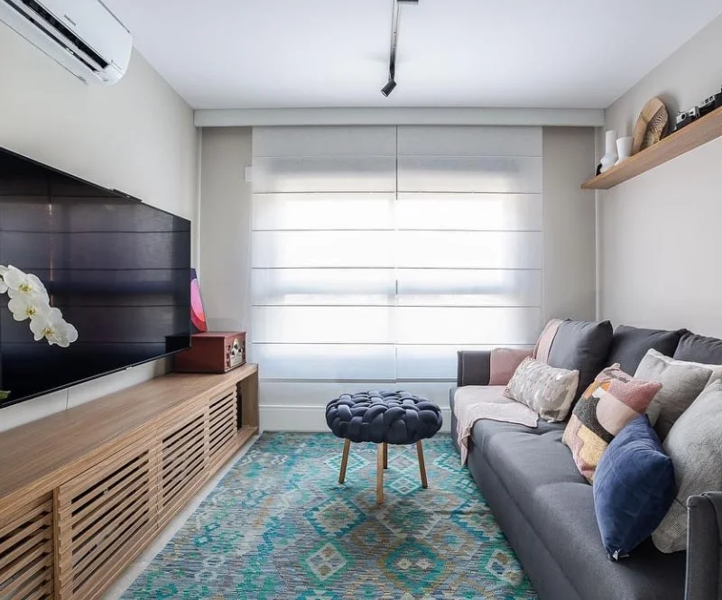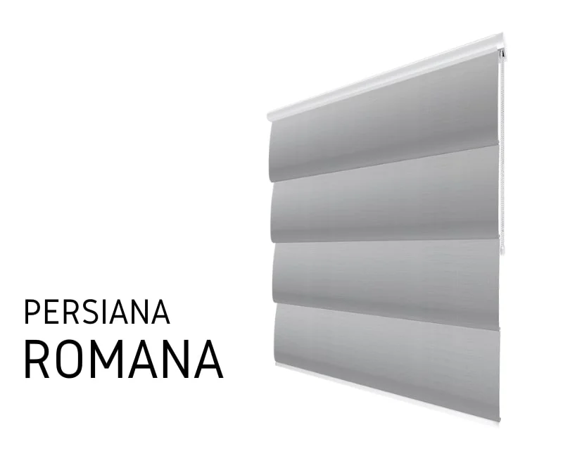 A Persiana Romana é clássica, com as faixas horizontais de tecido estruturadas por hastes horizontais, garantindo maior sustentação. O posicionamento das faixas permite a formação de silhuetas marcantes, que agregam charme aos espaços.